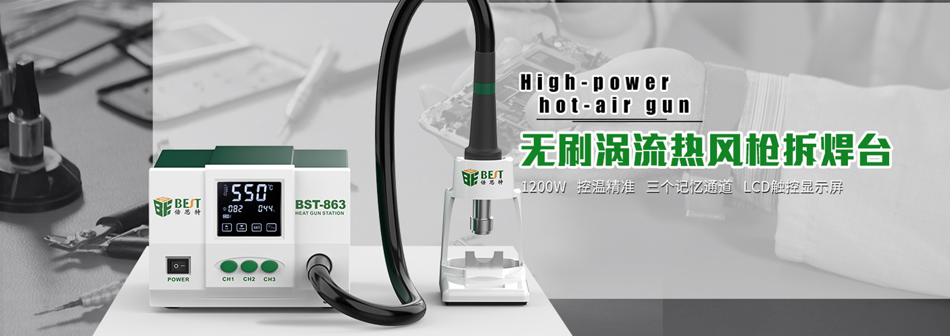 20多年来一直走在中国工具产业最前列,专业研发生产、批发销售一系列“BEST倍思特”品牌的电子、通迅、数码产品“产前-售后”各环节的配套产品设备(工具、仪器、…